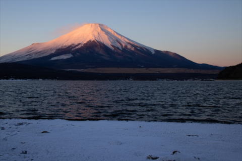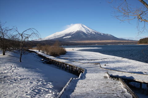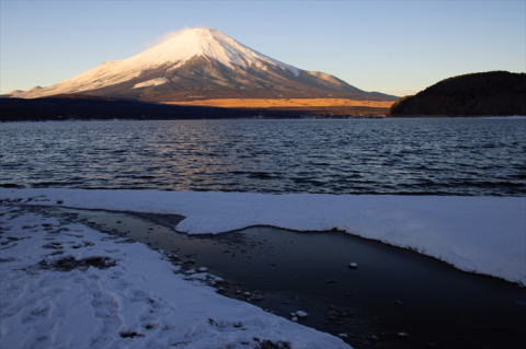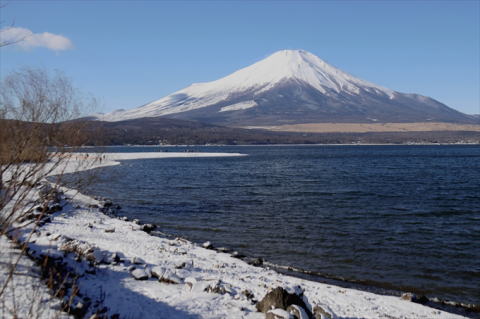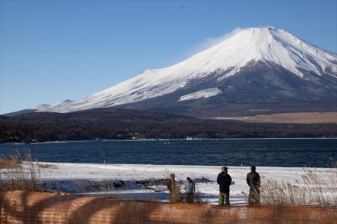 | 年末の家族旅行の前に山中湖へ。薄氷が張り逆さ富士がきれいだった。 |