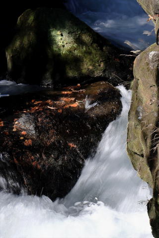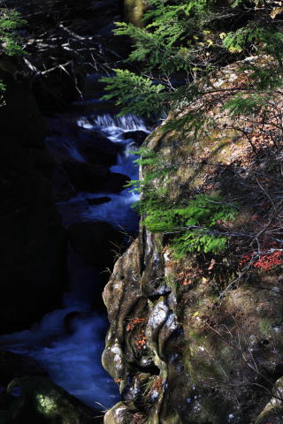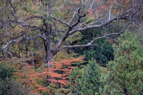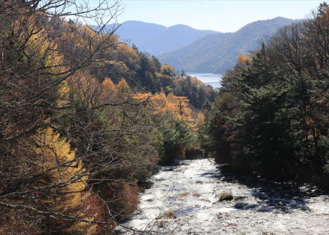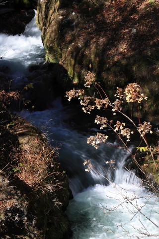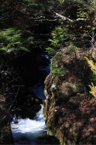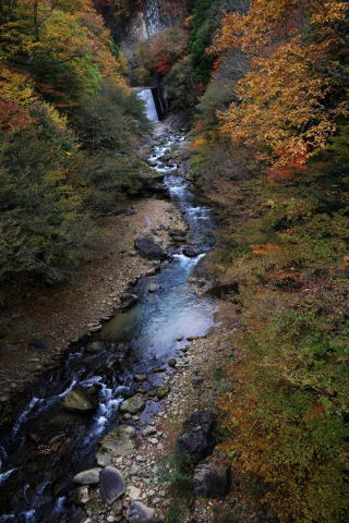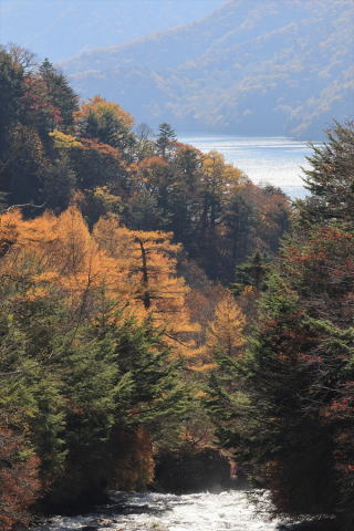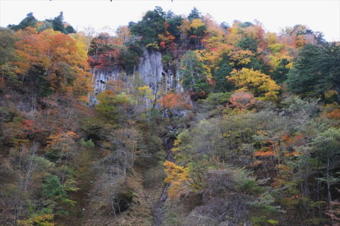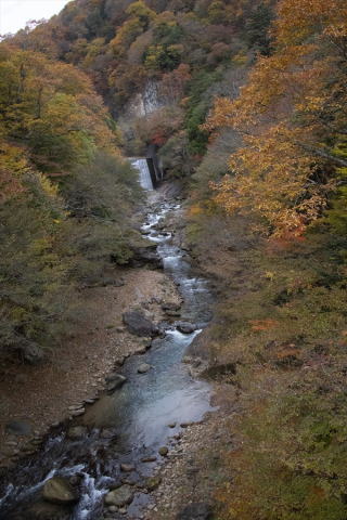 | 息子が加仁湯に行きたいと言うので竜頭の滝の寄って行くことにする。中禅寺湖あたりの紅葉は枯れていて、かっての燃えるえるような紅い紅葉は見られなかった。 竜頭の茶屋で降ろしてもらって竜頭橋まで歩くことにするが、取り付きの石段が怖かった。滝沿いの道は手すりが付いていたので、何とか橋まで歩くくことが出来た。 |