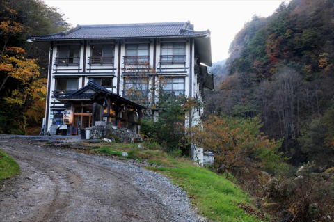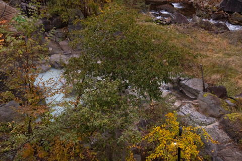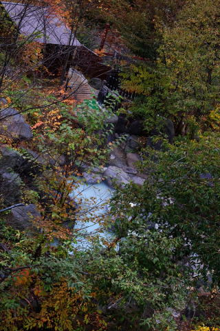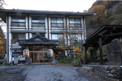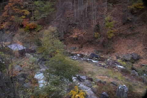 | 加仁湯温泉 女夫渕 から先は一般車は通行できないので15:25分加仁湯の送迎バスに乘る。ハイキングコースを歩く人もいたが、私も元気なら歩きたいほど綺麗な紅葉だった。25分 | |