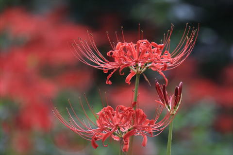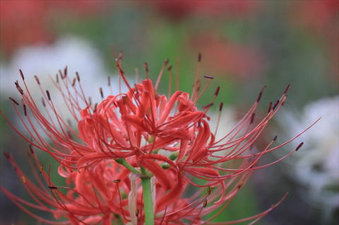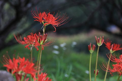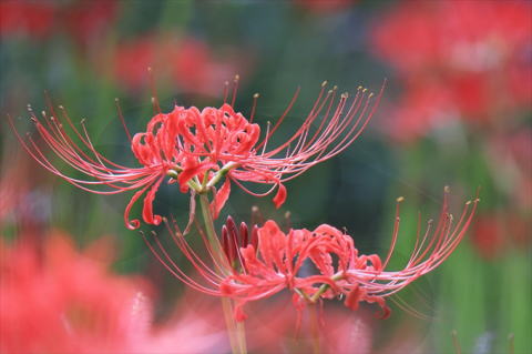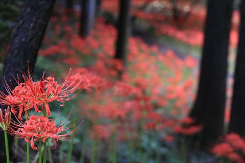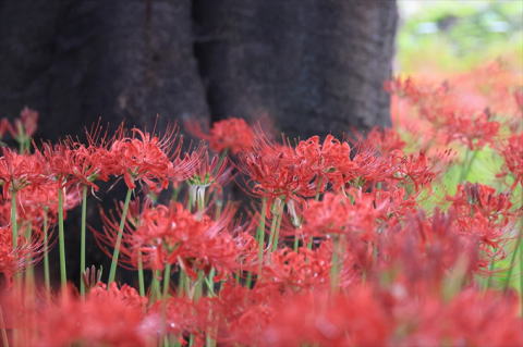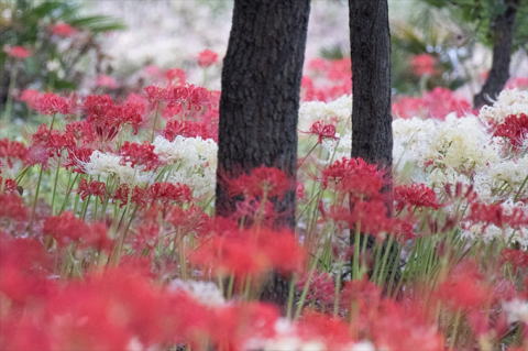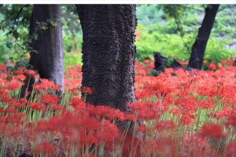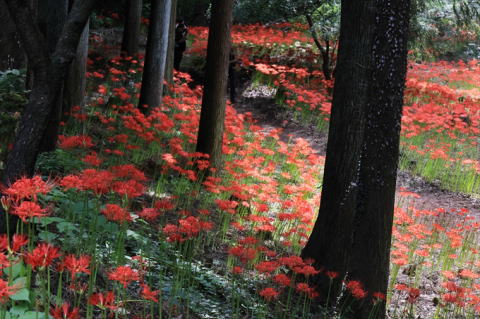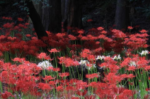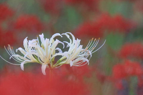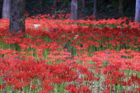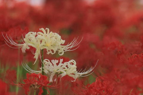 今年はいつまでも暑かったせいか、彼岸花の咲くのが遅かったようで小槻さんがいろいろ探して下さって、桐生の八木原の里と伊勢崎市の早川渕を選んで下さった。八木原の里はわたらせ渓谷鉄道の水沼駅から5分のところにあり、渡良瀬川に降りて行く斜面・見下ろす下の河原に一面に咲いていて感激した。近頃とみに足腰が弱くなり、急斜面の坂道は転びそうで怖かった。しゃがむこともままならず、珍しいちょうちょが飛んでいたのに、追いかけられず満足な写真が撮れなかったが、何とか撮れた写真が合評会で選出され、先生にも褒められたのは嬉しかった 早川渕彼岸花の里は、2019年から閉園になっていたが、有志のボランティアの方たちの力により2024年に再開、クヌギの雑木林約3,000㎡の中に彼岸花が群生していた。八木原の里が素晴らしかったので、見劣りしたが、白い彼岸花が多かった。 |