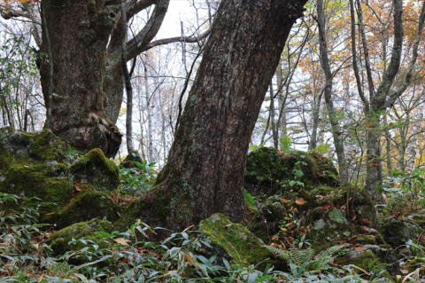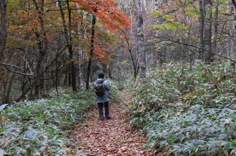 | 今日の天気予報は曇りのことだったので、寒さ対策に毛糸の帽子を用意して用意して行ったら、小雨が降っていた。傘をさして歩き始めたら止んだので杖代わりにして歩く。やはり山道は2本杖が必要なほど歩行が困難になってきた。山歩き用の杖を持ってきて良かった.、特に下りは怖った。 | ||||